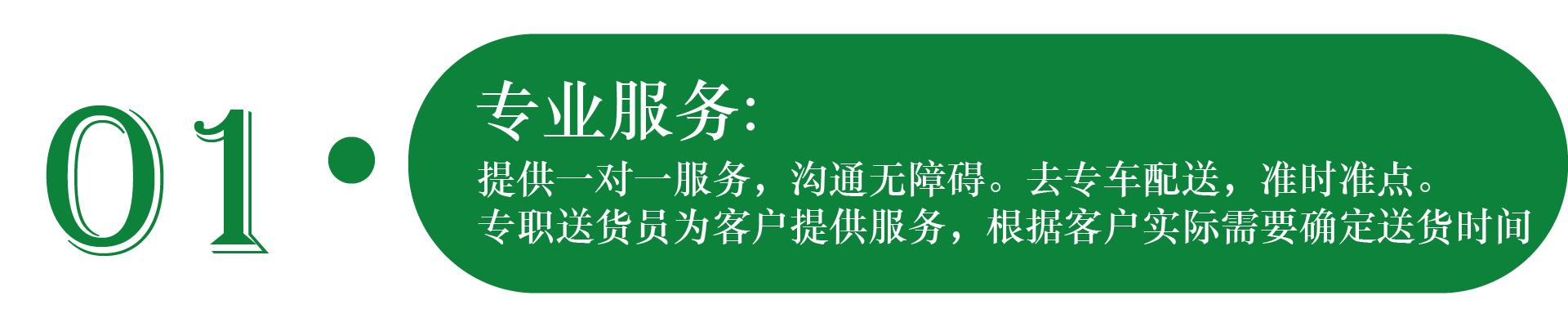 • · 提供一對一服務,專車配送,準時準點